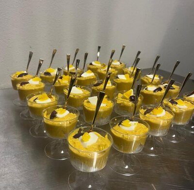 For those with a sweet tooth, our dessert bites are just as tempting. Indulge in alfajorcitos (with your choice of presentation), mini piononitos (caramel rolls), lucuma or passionfruit cheesecake shots, mini lemon pies, creamy flan, arroz con leche, mazamorra morada, suspiro de limeña, and tres leches or cuatro leches shooters—including a version made with Peruvian pisco. Our chocolate-covered strawberries and mini churro cheesecakes are guest favorites, perfect for adding a sweet, elegant finish to your table.